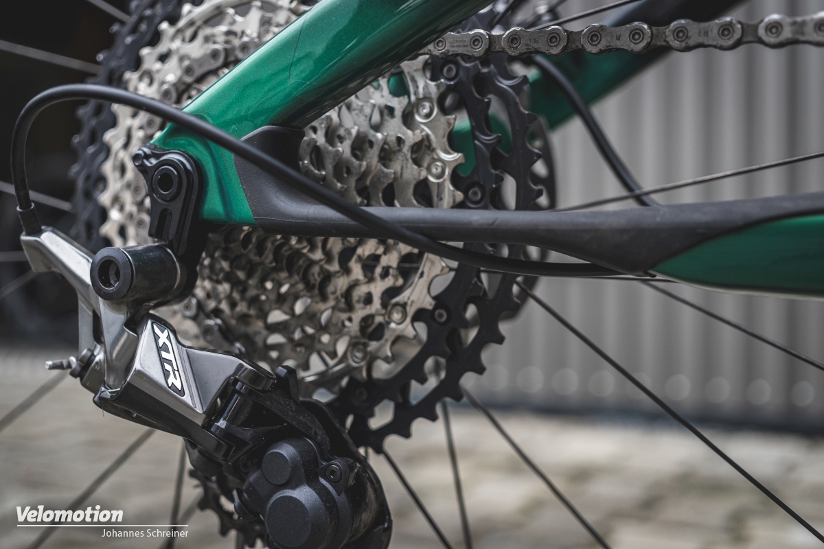 Anche il resto della nostra bici di prova è ben scelto. Grazie alle impugnature ESI integrate, puoi guidare senza guanti. I freni Shimano XT, introdotti solo lo scorso anno, decelerano senza che il punto di pressione si muova. Il collegamento tra il terreno e la ruota è formato da pneumatici Maxxis Ardent Race nella parte anteriore e pneumatici Maxxis Rekon Race nella parte posteriore. Senza camera d'aria, offrono un supporto laterale e una presa sufficienti con una bassa resistenza al rotolamento.